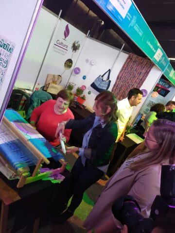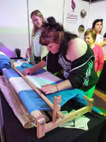 En su stand, San Cayetano presentó la bandera argentina que se confecciona en el Taller de Telar. Allí fueron más de 100 personas que se animaron a tejer un par de vueltas en el telar de peine sureño, entre ellos la titular del Instituto Cultural, Florencia Saintout. Cabe remarcar que fue la primara vez que esta producción sale del Distrito, ya que anteriormente había recorrido instituciones de nuestro Partido.