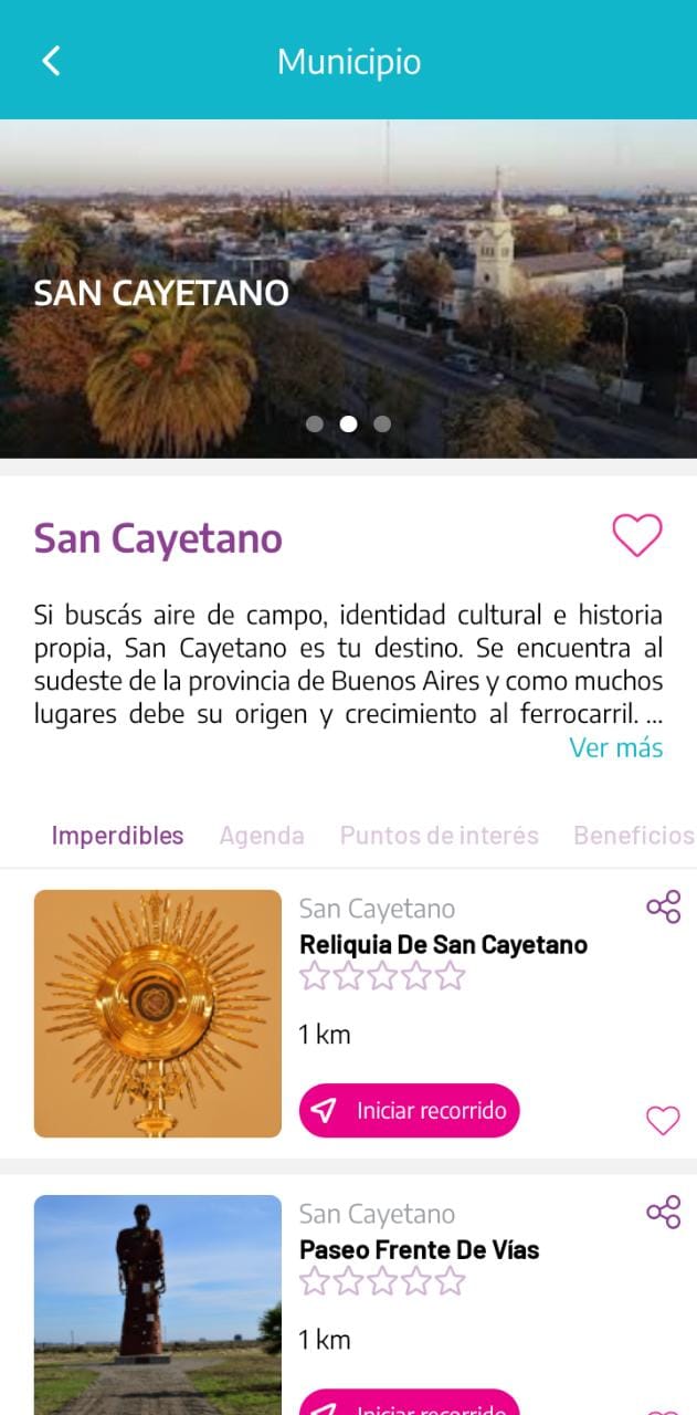 La masiva participación de los municipios permite compilar en una sola plataforma los puntos de interés de cada localidad, información que aparece en el dispositivo del turista según su ubicación geográfica. San Cayetano, a través del área de Turismo, participa activamente con toda la información necesaria para promover los atractivos y eventos del Distrito.