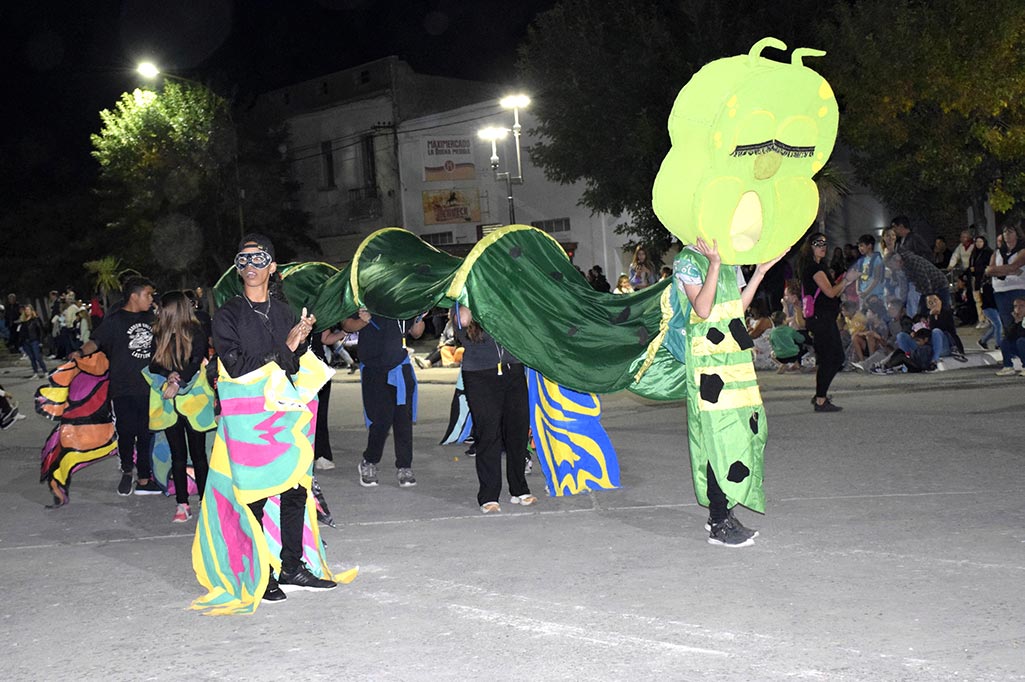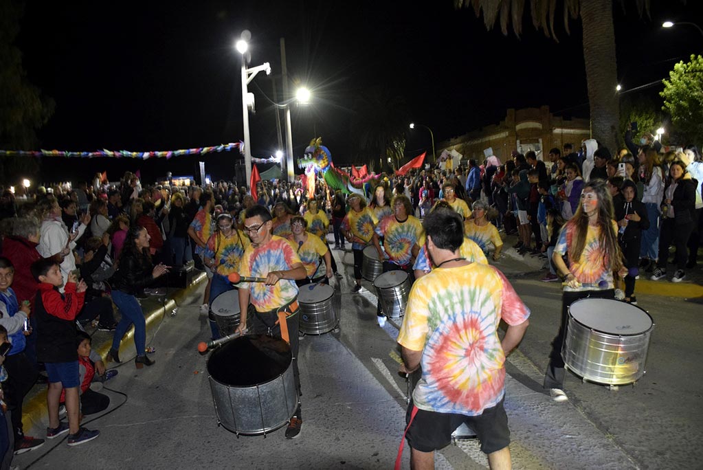 Pasadas las 20:30 horas, desde el Espacio Cultural partieron las “estrellas” de la noche. Un ruidoso y colorido desfile de murgas, comparsas, instituciones y artistas fueron contagiando a su paso el espíritu carnavalesco.