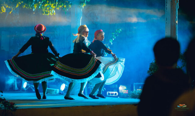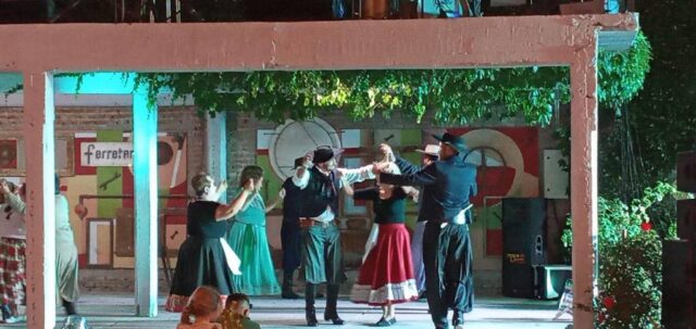 En el confortable patio externo del lugar, la danza se hizo presente con “Alma Pampa” y su folclore de proyección, y el taller de folclore de la Dirección de Cultura coordinado por Jorge Canal, con sobrada trayectoria y formación académica.