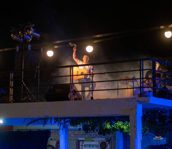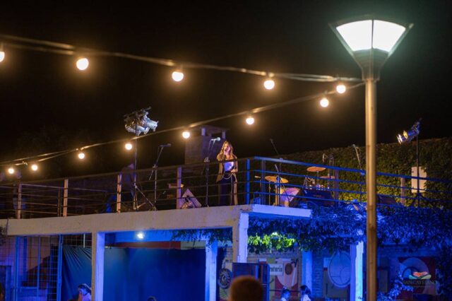La terraza del semicubierto del patio fue la elegida para las bandas: por allí pasaron las inconfundibles voces de los sancayetanenses Lisandro Chirino y Walter “Chispa” Visciarelli (acompañado por Gerardo Catalá);  la profesora del taller que se dicta en el Espacio Cultural, Carolina Ferrando y el cierre con los marplatenses de “Clave Nochera” y su tributo a Los Nocheros, con Marcos Cerchiara como artista invitado. La noche cerró a puro baile con Villa DJ.