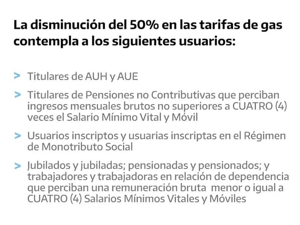 De esta manera, se incorporarían localidades de las provincias de Mendoza, San Juan, Salta, San Luis y Buenos Aires, dando alivio a usuarios y usuarias de gas de las zonas más frías del país en un contexto de pandemia y en el momento de inicio de las bajas temperaturas.