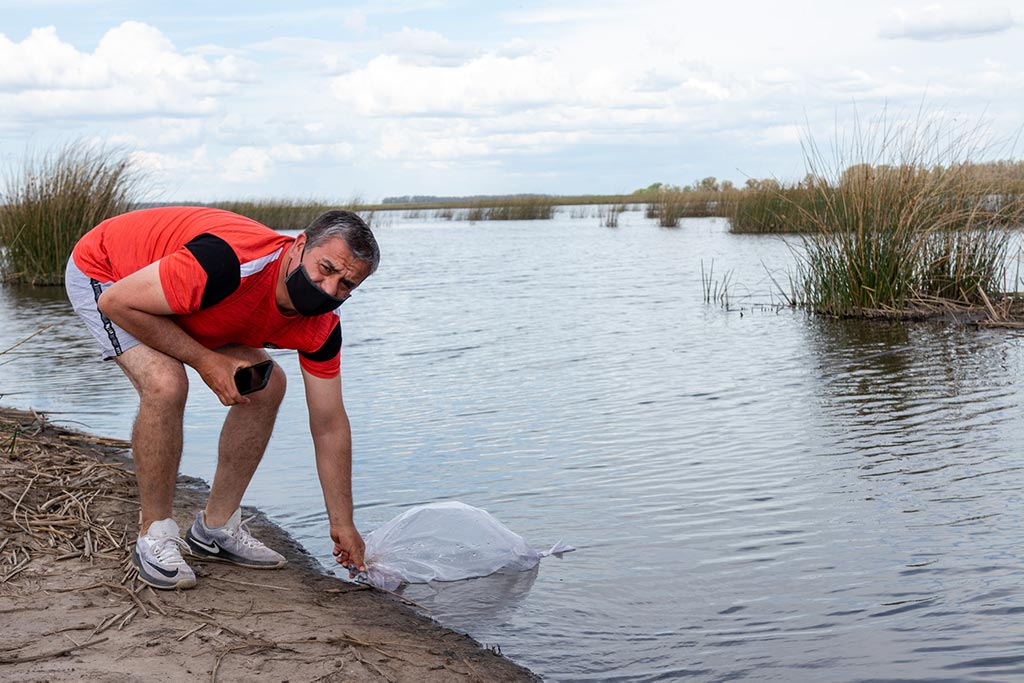 El director de Producción, Matías Pecker junto a Guillermo Devincenti y Marcos Beaín, presidente y tesorero del Club, distribuyeron las 10 bolsas teniendo en cuenta el estado de cada laguna y la actividad que llevan a cabo durante el año.