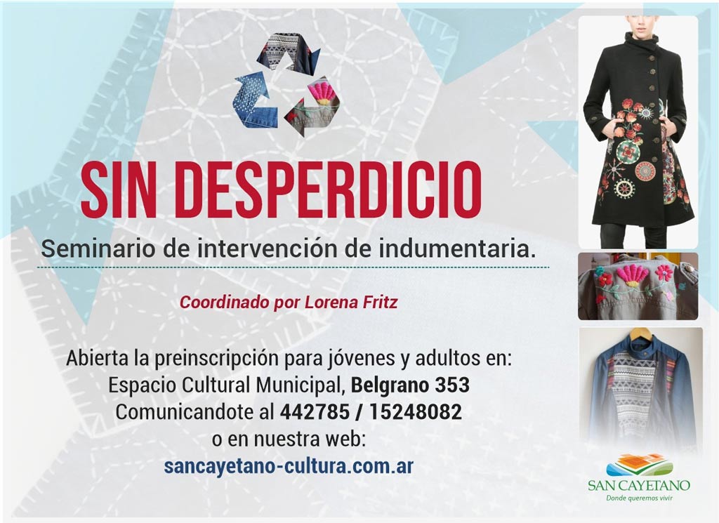 Desde la Dirección de Educación y Cultura se invita a participar del Seminario de intervención de indumentaria “Sin Desperdicio” que se desarrollará durante los meses de junio y julio en el Espacio Cultural.
