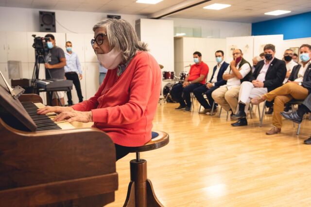 Luego, el Intendente y Elsa Redondo (alumna de Corradi y referente musical) descubrieron la placa que impone el nombre de Enrique “Quique” Corradi a la Sala de Música.