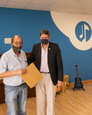 Seguidamente se leyó la Ordenanza 2738/2021 que impone el nombre de Enrique Corradi a la Sala de Música del Espacio Cultural, entregando el Intendente Gargaglione una copia de la misma a Julio Klink, amigo de Quique.