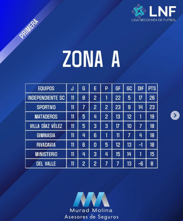 Tabla de posiciones – Zona A