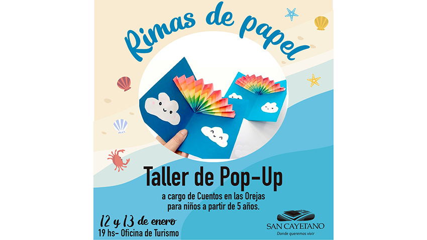 El dúo de narración oral “Cuentos en las orejas” se presentará en el Balneario San Cayetano desarrollando un taller de Pop Up. Será los días jueves y viernes próximo a partir de las 19 horas en la Oficina de Turismo.